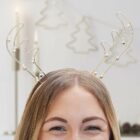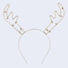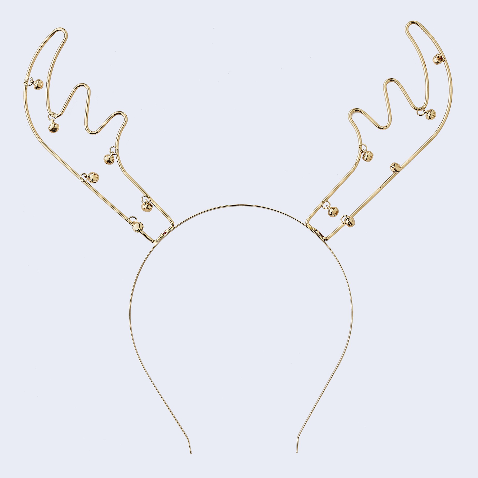 Diadema metálica dorada con 2 antenas de reno y cascabeles.