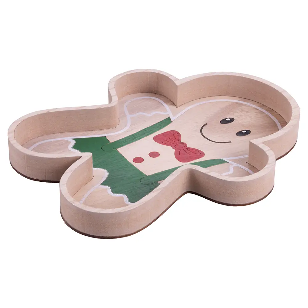 Set de 2 bandejas de madera con forma de hombre de jengibre. Medidas: 22x28x2,8cm y 18×22,5x 2,8cm.