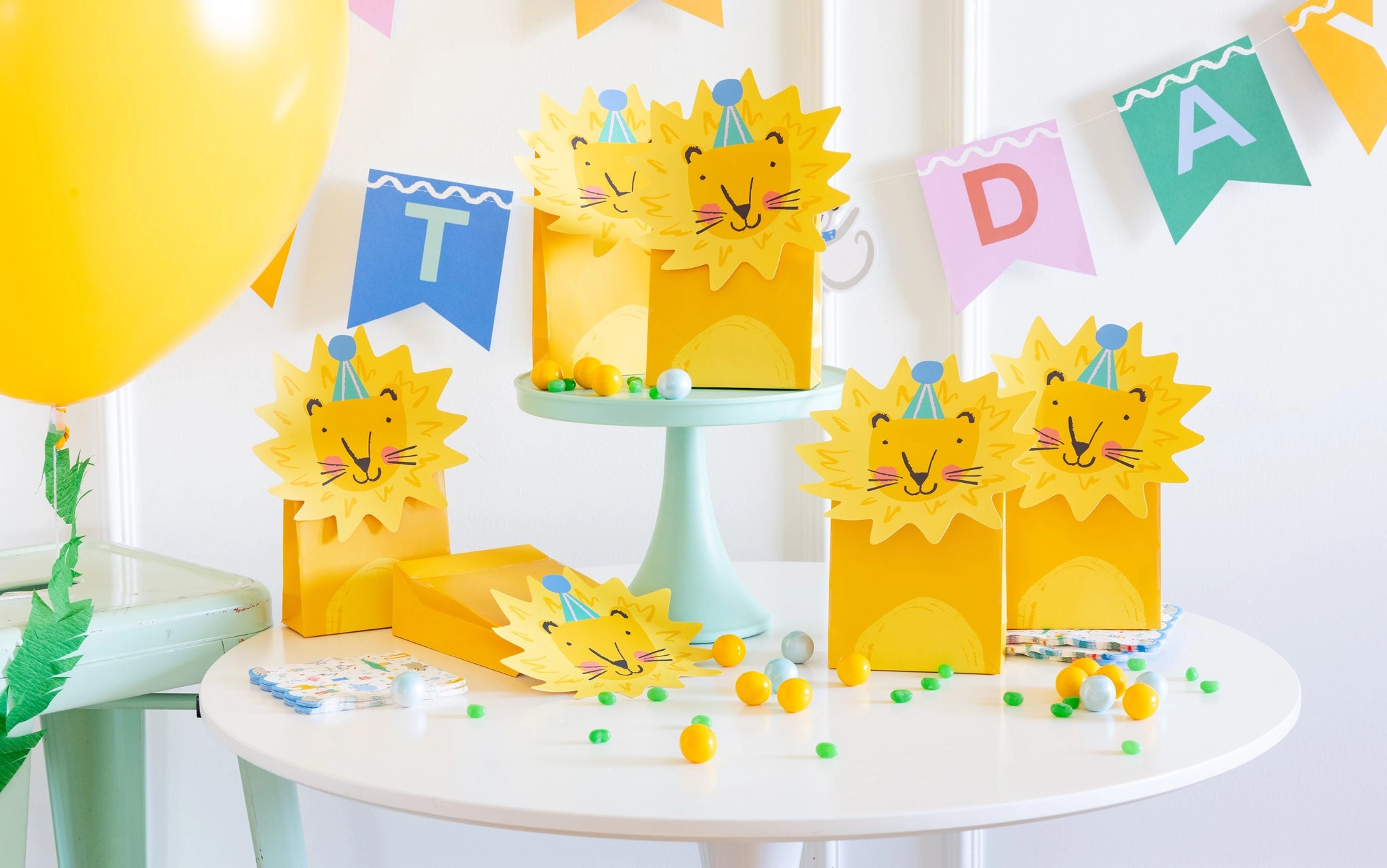 Pack de 8 bolsas de papel con estampado de león , mide 17×12,5x5cm.