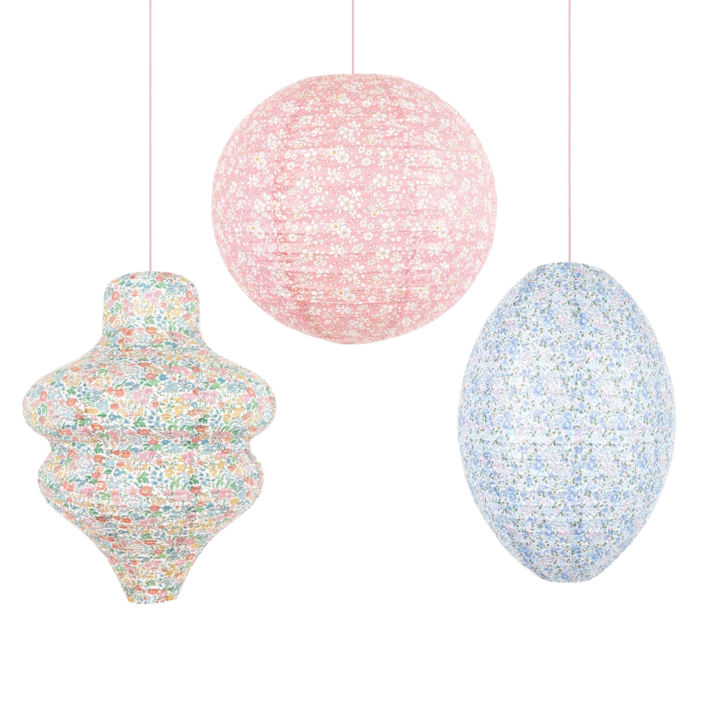 Eleva tu evento con estos farolillos de papel pastel, que nacen de una colaboración de Meri Meri x Liberty. Estos farolillo vienen en tres formas y tamaños difernente, con un estampado floral Liberty, para crear alegría con estilo. Se pueden montar juntos o exhibir individualmente y reutilizar celebración tras celebración. Son perfectos para un baby shower, una fiesta en el jardín o para cualquier reunión especial.