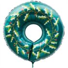 Globo con forma de corona de navidad, hinchado con helio. Mide 70cm