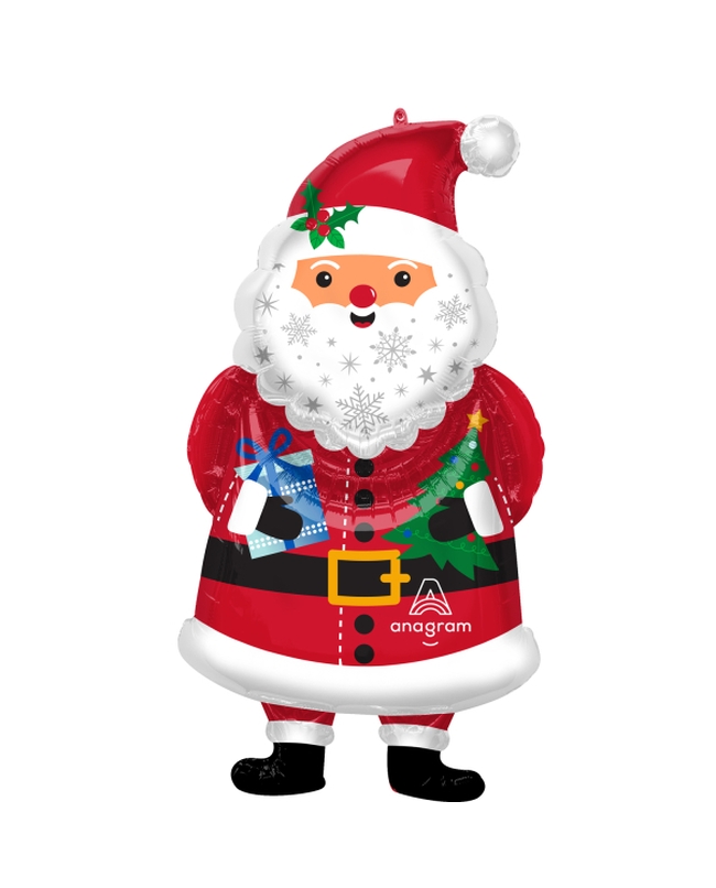 Globo de foil metalizado con forma de Papá Noel con la barba nevada, mide 86cm y va hinchado con helio.