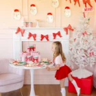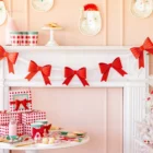 Preciosa guirnalda de lazos rojos, vienen unidas mediante un lazo de tela. La guirnalda trae 8 lazos y mide 2,10m aproximadamente.