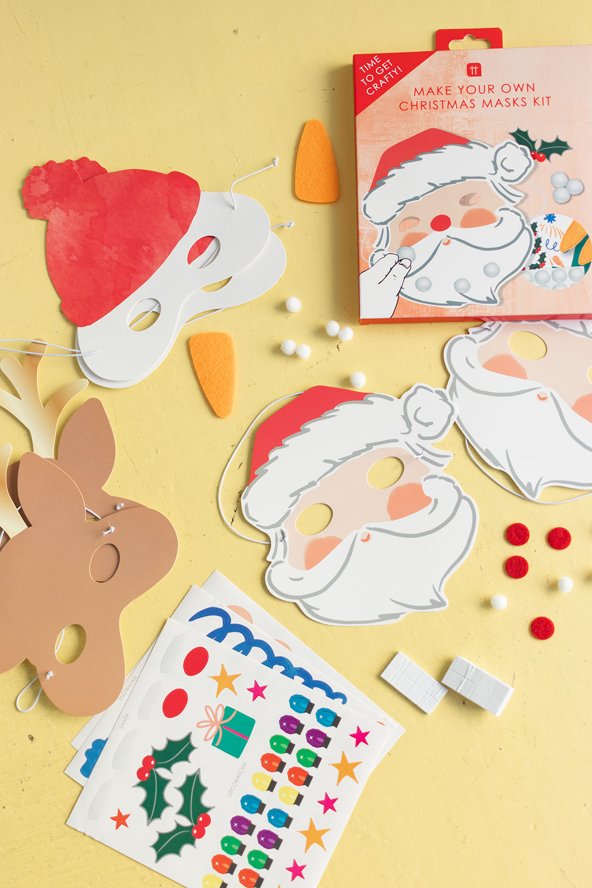 Entretén a los más pequeños estas navidades con este kit de manualidades para hacer máscaras. Decora a Papá Noel, un muñeco de nieve o un reno con las pegatinas, pompones, figuras o purpurina. Una divertida actividad para los niños y genial para hacerse luego fotos. Incluye 6 máscaras.