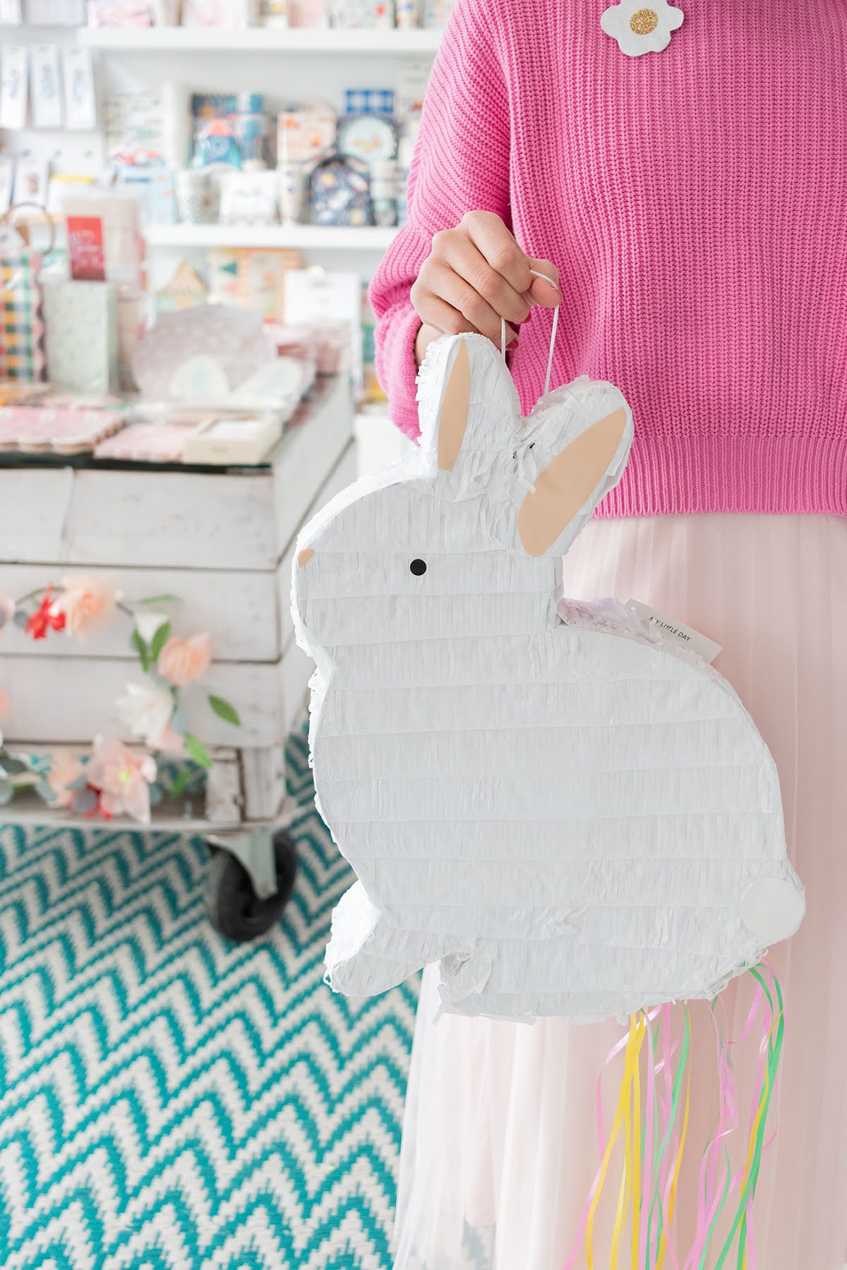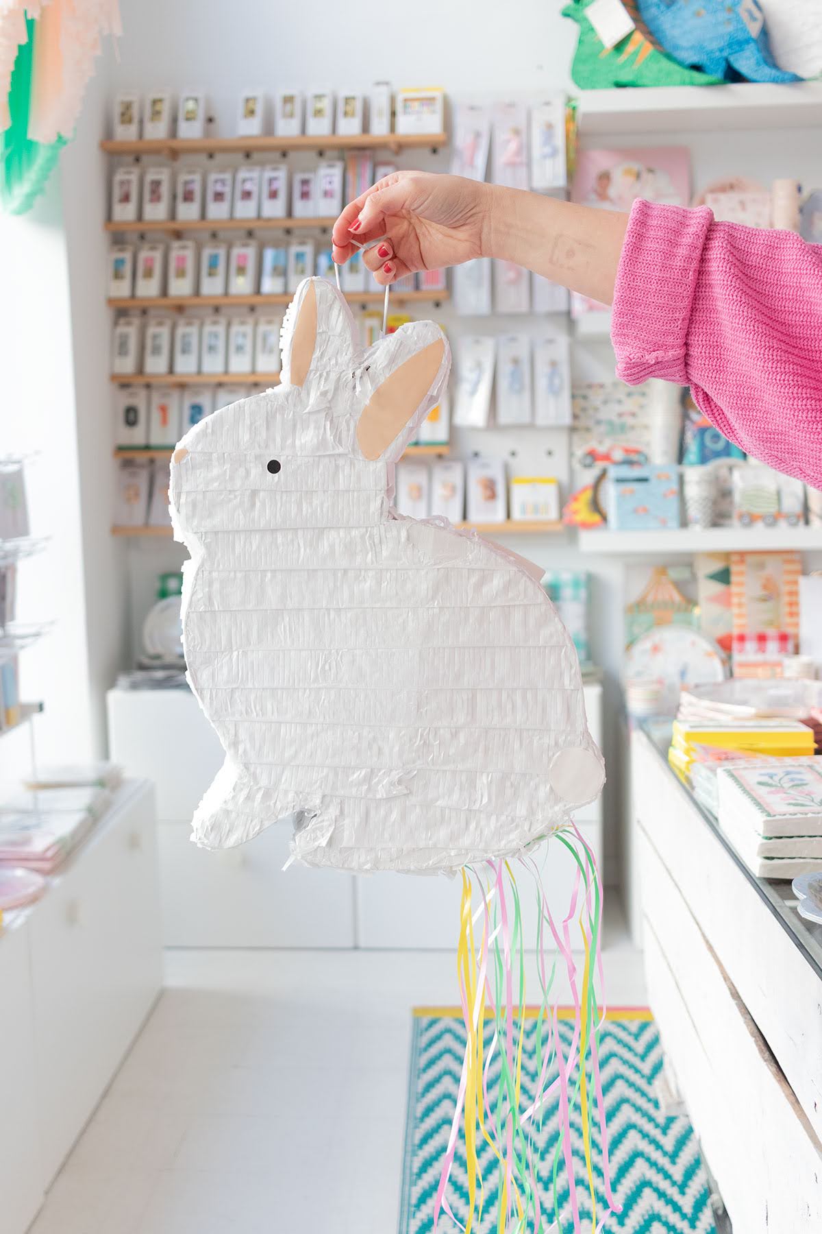 Esta piñata grande con forma de cabeza de conejo, es monísima y fácil de rellenar. Es una pasada para celebrar la pascua y llenarla de regalitos.