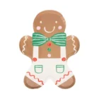 Precioso plato con forma de hombre de jengibre. Este pack trae 8 unidades, miden 19x25cm aprox. Son perfectos para decorar cualquier mesa con motivo navideño.