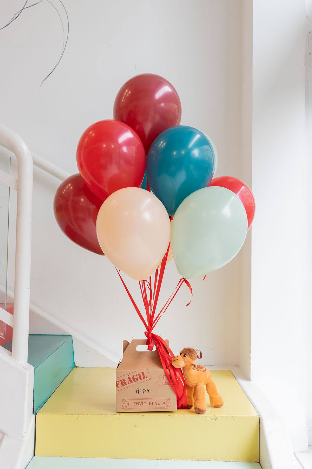 El camello real, Turrón llegará a tu hogar, junto a una carta, dentro de una caja personalizada con el nombre de tu niñ@. Sostenido por un ramo de 10 globos de látex en los colores de nuestra colección.