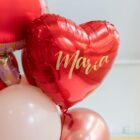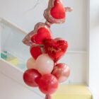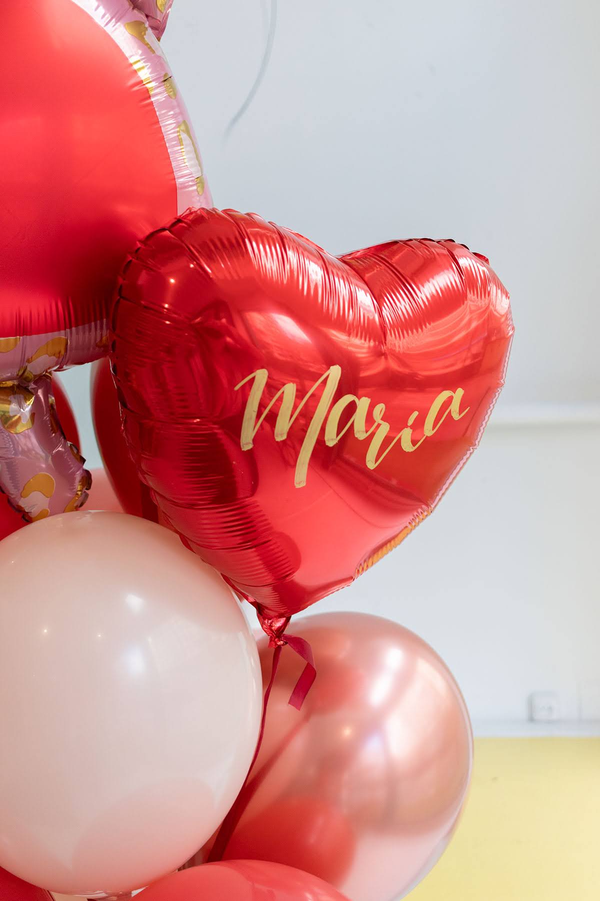 Ramo de globos hinchado con helio compuesto por 1 globo de foil en forma de leopardo de gafas, 1 corazón de foil de 35cm el cual podrás personalizar con un texto pequeño y 10 globos de látex de 28cm. Todo sujetos por unos flecos de papel y atados a un tarrito de chuches.