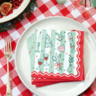 Pack de 20 servilletas tamaño lunch, con estampado de motivos navideños. Miden 16,5×16,5cm cerradas y 33x33cm abiertas