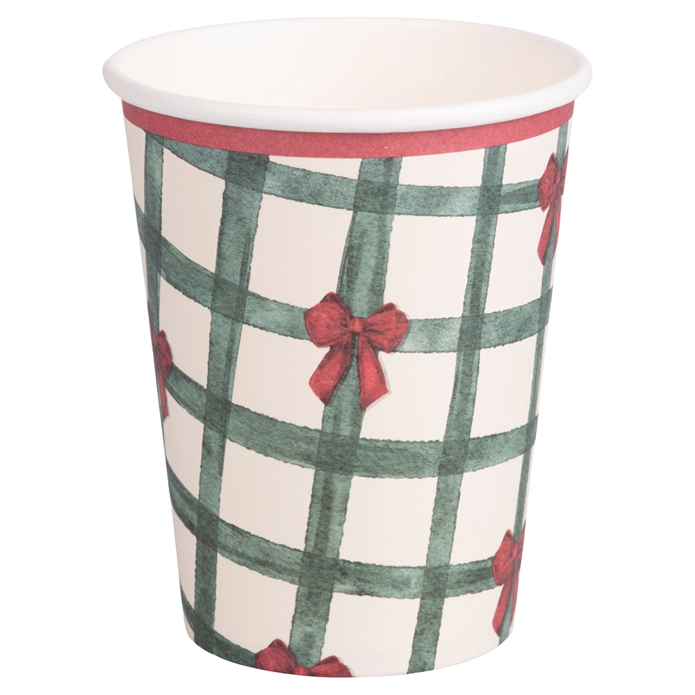 Pack de 18 vasos con estampado vichy en verde, con lazos rojos. Combínalas con el resto de su colección.