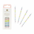 Pack de 16 velas blancas con estampado de flores en amarillo, rosa y azul. Miden 10cm